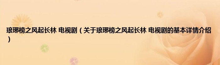 本文关于琅琊榜之风起长林 电视剧的基本详情介绍就讲解完毕,希望对大家有所帮助。