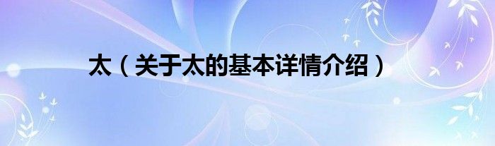 本文关于太的基本详情介绍就讲解完毕,希望对大家有所帮助。