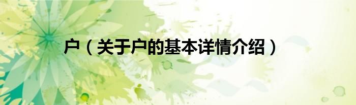 本文关于户的基本详情介绍就讲解完毕,希望对大家有所帮助。