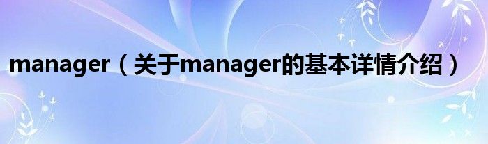 本文关于manager的基本详情介绍就讲解完毕,希望对大家有所帮助。