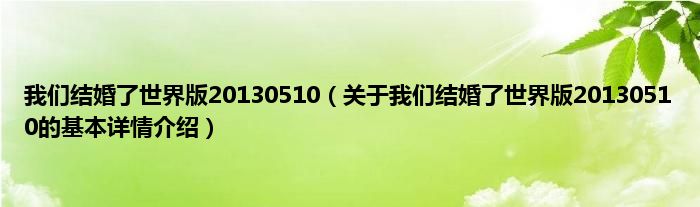 本文关于我们结婚了世界版20130510的基本详情介绍就讲解完毕,希望对大家有所帮助。