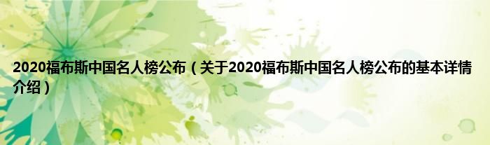 本文关于2020福布斯中国名人榜公布的基本详情介绍就讲解完毕,希望对大家有所帮助。