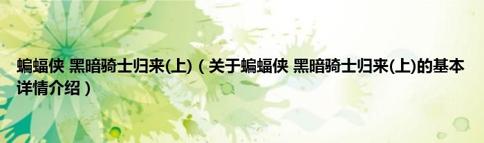 本文关于蝙蝠侠 黑暗骑士归来(上)的基本详情介绍就讲解完毕,希望对大家有所帮助。