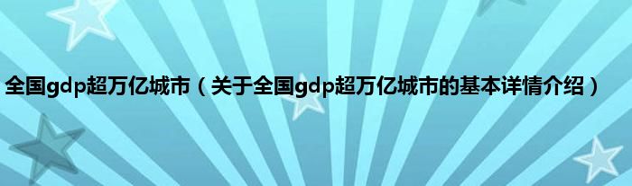 本文关于全国gdp超万亿城市的基本详情介绍就讲解完毕,希望对大家有所帮助。