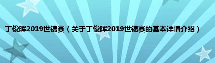 本文关于丁俊晖2019世锦赛的基本详情介绍就讲解完毕,希望对大家有所帮助。