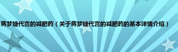 本文关于蒋梦婕代言的减肥药的基本详情介绍就讲解完毕,希望对大家有所帮助。