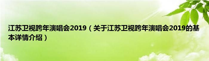 本文关于江苏卫视跨年演唱会2019的基本详情介绍就讲解完毕,希望对大家有所帮助。
