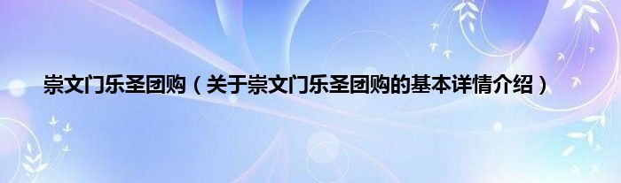 本文关于崇文门乐圣团购的基本详情介绍就讲解完毕,希望对大家有所帮助。