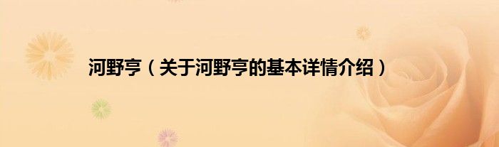 本文关于河野亨的基本详情介绍就讲解完毕,希望对大家有所帮助。