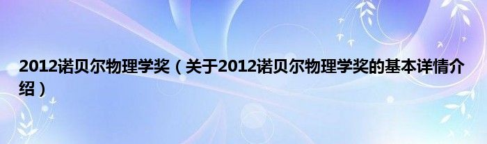 本文关于2012诺贝尔物理学奖的基本详情介绍就讲解完毕,希望对大家有所帮助。