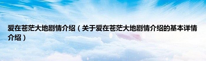 本文关于爱在苍茫大地剧情介绍的基本详情介绍就讲解完毕,希望对大家有所帮助。