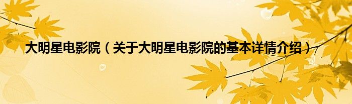 本文关于大明星电影院的基本详情介绍就讲解完毕,希望对大家有所帮助。