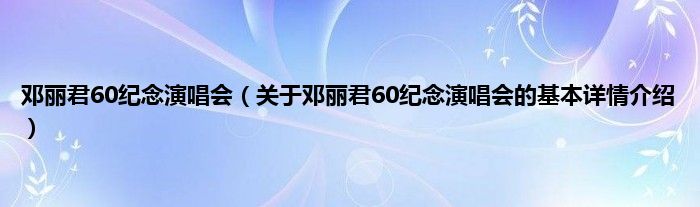 邓丽君60纪念演唱会(关于邓丽君60纪念演唱会的基本详情介绍)