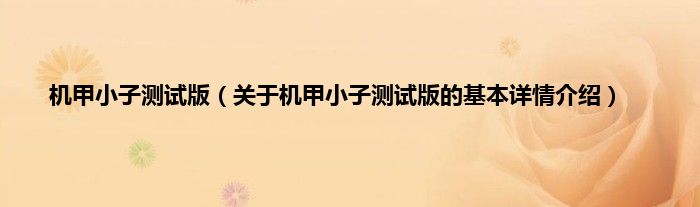 机甲小子测试版(关于机甲小子测试版的基本详情介绍)