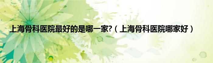 以上就是【上海骨科医院最好的是哪一家?,上海骨科医院哪家好】相关内容。