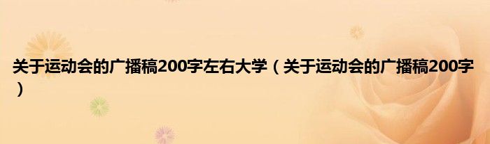 以上就是【关于运动会的广播稿200字左右大学,关于运动会的广播稿200字】相关内容。