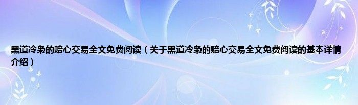 本文关于黑道冷枭的赔心交易全文免费阅读的基本详情介绍就讲解完毕,希望对大家有所帮助。