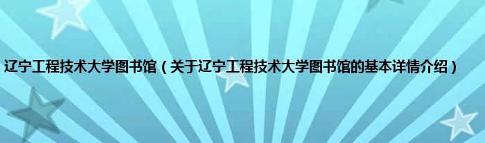 辽宁工程技术大学图书馆(关于辽宁工程技术大学图书馆的基本详情介绍)