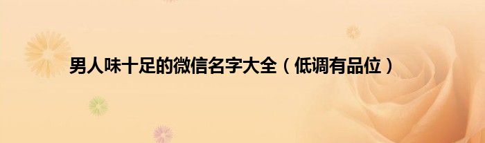 大家好,综合小编来为大家讲解下。男人味十足的微信名字大全,低调有品位这个很多人还不知道,现在让我们一起来看看吧!