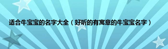 大家好,综合小编来为大家讲解下。适合牛宝宝的名字大全,好听的有寓意的牛宝宝名字这个很多人还不知道,现在让我们一起来看看吧!