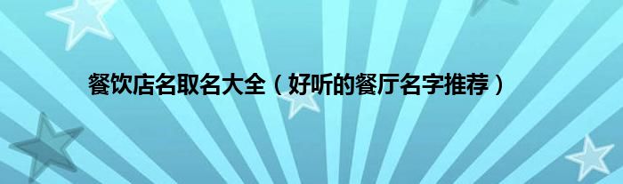 大家好,综合小编来为大家讲解下。餐饮店名取名大全,好听的餐厅名字推荐这个很多人还不知道,现在让我们一起来看看吧!
