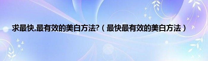 以上就是【求最快,最有效的美白方法?,最快最有效的美白方法】相关内容。