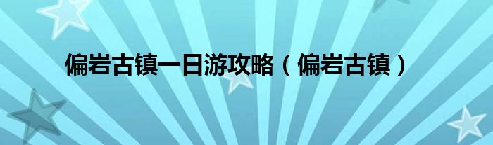 以上就是【偏岩古镇一日游攻略,偏岩古镇】相关内容。