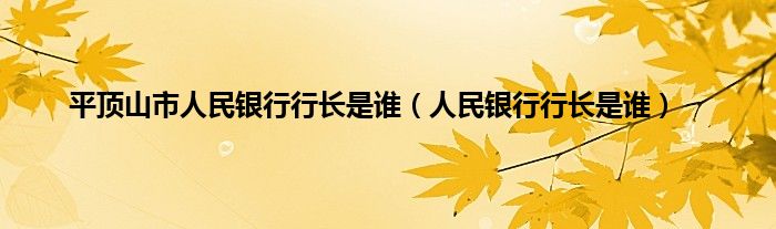 以上就是【平顶山市人民银行行长是谁,人民银行行长是谁】相关内容。