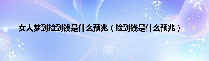 大家好,小问来为大家解答以上问题。女人梦到捡到钱是什么预兆,捡到钱是什么预兆这个很多人还不知道,现在让我们一起来看看吧!