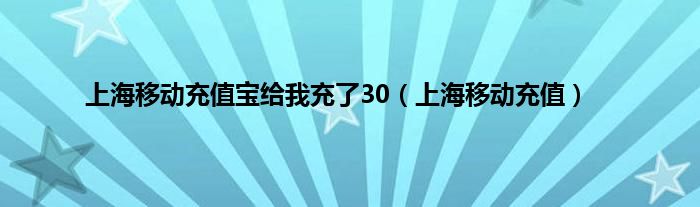 大家好,小问来为大家解答以上问题。上海移动充值宝给我充了30,上海移动充值这个很多人还不知道,现在让我们一起来看看吧!