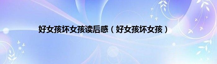 大家好,小问来为大家解答以上问题。好女孩坏女孩读后感,好女孩坏女孩这个很多人还不知道,现在让我们一起来看看吧!