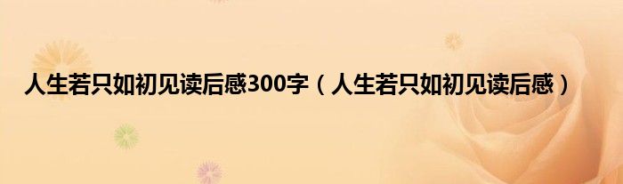 以上就是【人生若只如初见读后感300字,人生若只如初见读后感】相关内容。