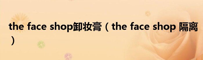 大家好,小问来为大家解答以上问题。the face shop卸妆膏,the face shop 隔离这个很多人还不知道,现在让我们一起来看看吧!