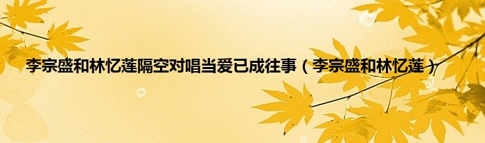 大家好,小问来为大家解答以上问题。李宗盛和林忆莲隔空对唱当爱已成往事,李宗盛和林忆莲这个很多人还不知道,现在让我们一起来看看吧!