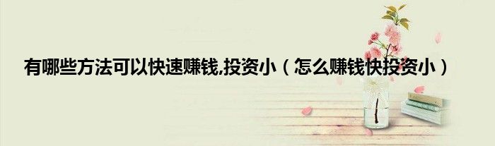 以上就是【有哪些方法可以快速赚钱,投资小,怎么赚钱快投资小】相关内容。