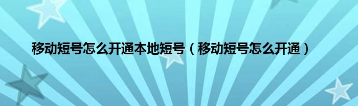 移动短号怎么开通本地短号(移动短号怎么开通)