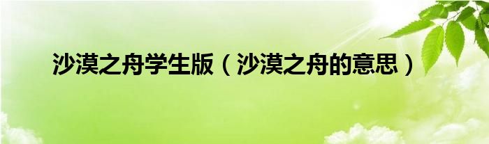 以上就是【沙漠之舟学生版,沙漠之舟的意思】相关内容。