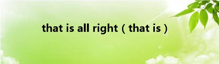 大家好,小问来为大家解答以上问题。that is all right,that is这个很多人还不知道,现在让我们一起来看看吧!