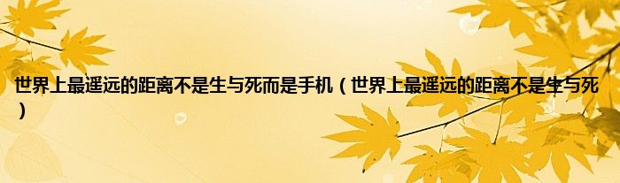 以上就是【世界上最遥远的距离不是生与死而是手机,世界上最遥远的距离不是生与死】相关内容。