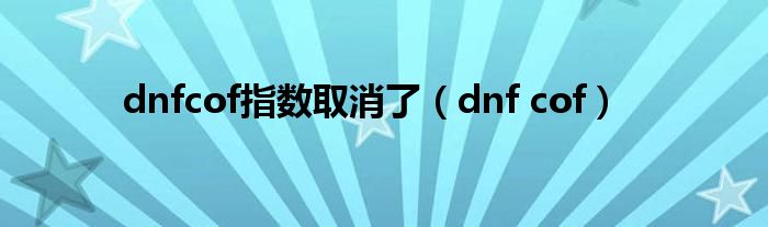 以上就是【dnfcof指数取消了,dnf cof】相关内容。