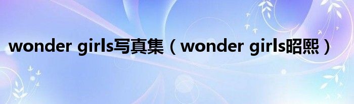 大家好,小问来为大家解答以上问题。wonder girls写真集,wonder girls昭熙这个很多人还不知道,现在让我们一起来看看吧!