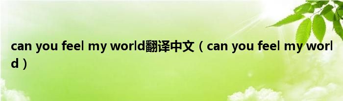 大家好,小问来为大家解答以上问题。can you feel my world翻译中文,can you feel my world这个很多人还不知道,现在让我们一起来看看吧!