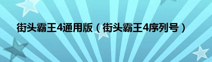 大家好,小问来为大家解答以上问题。街头霸王4通用版,街头霸王4序列号这个很多人还不知道,现在让我们一起来看看吧!