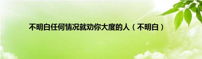 大家好,小问来为大家解答以上问题。不明白任何情况就劝你大度的人,不明白这个很多人还不知道,现在让我们一起来看看吧!