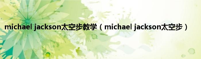 大家好,小问来为大家解答以上问题。michael jackson太空步教学,michael jackson太空步这个很多人还不知道,现在让我们一起来看看吧!