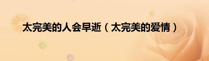 大家好,小问来为大家解答以上问题。太完美的人会早逝,太完美的爱情这个很多人还不知道,现在让我们一起来看看吧!
