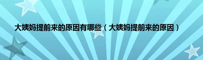 本文,大姨妈提前来的原因有哪些,大姨妈提前来的原因到此就分享完毕,希望对大家有所帮助。