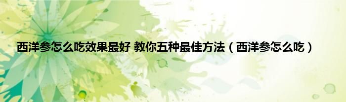 本文,西洋参怎么吃效果最好 教你五种最佳方法,西洋参怎么吃到此就分享完毕,希望对大家有所帮助。