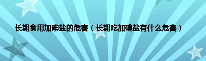 大家好,长期食用加碘盐的危害,长期吃加碘盐有什么危害很多人还不知道,现在让我们一起来看看吧!