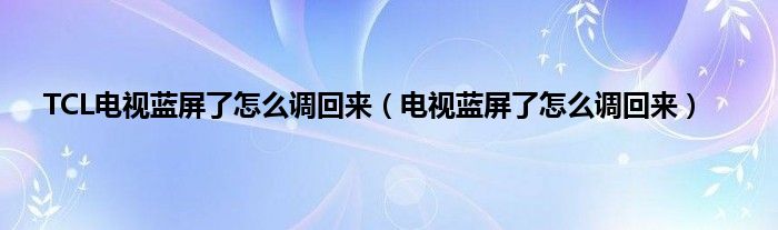 以上就是【TCL电视蓝屏了怎么调回来,电视蓝屏了怎么调回来】相关内容。